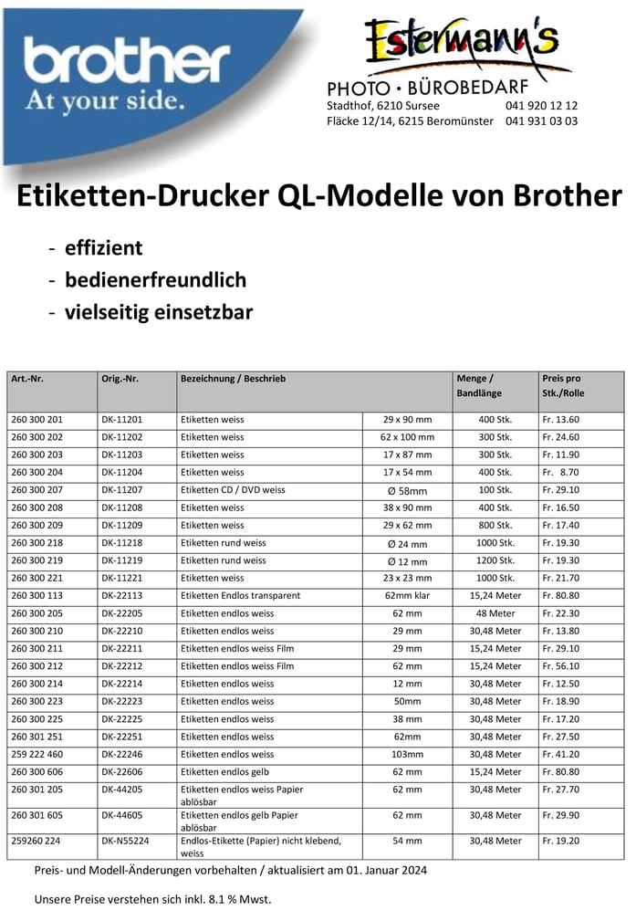 Selbstverständlich führen wir auch eine grosse Palette an verschiedenen Beschriftungsbänder.