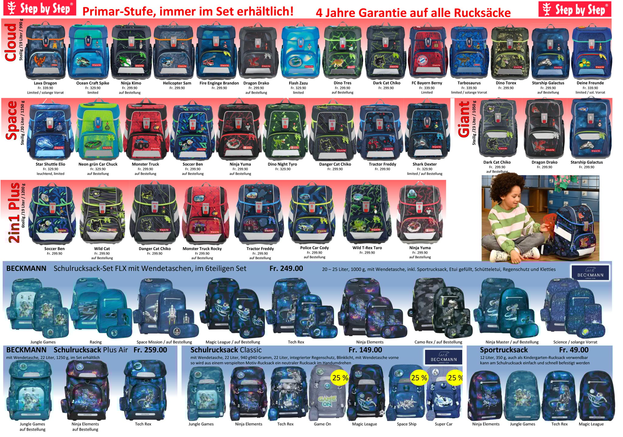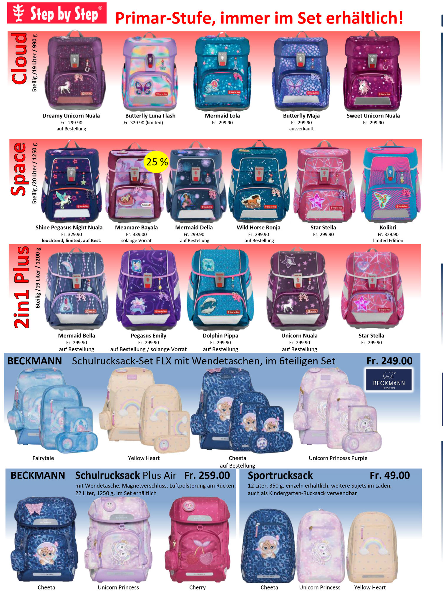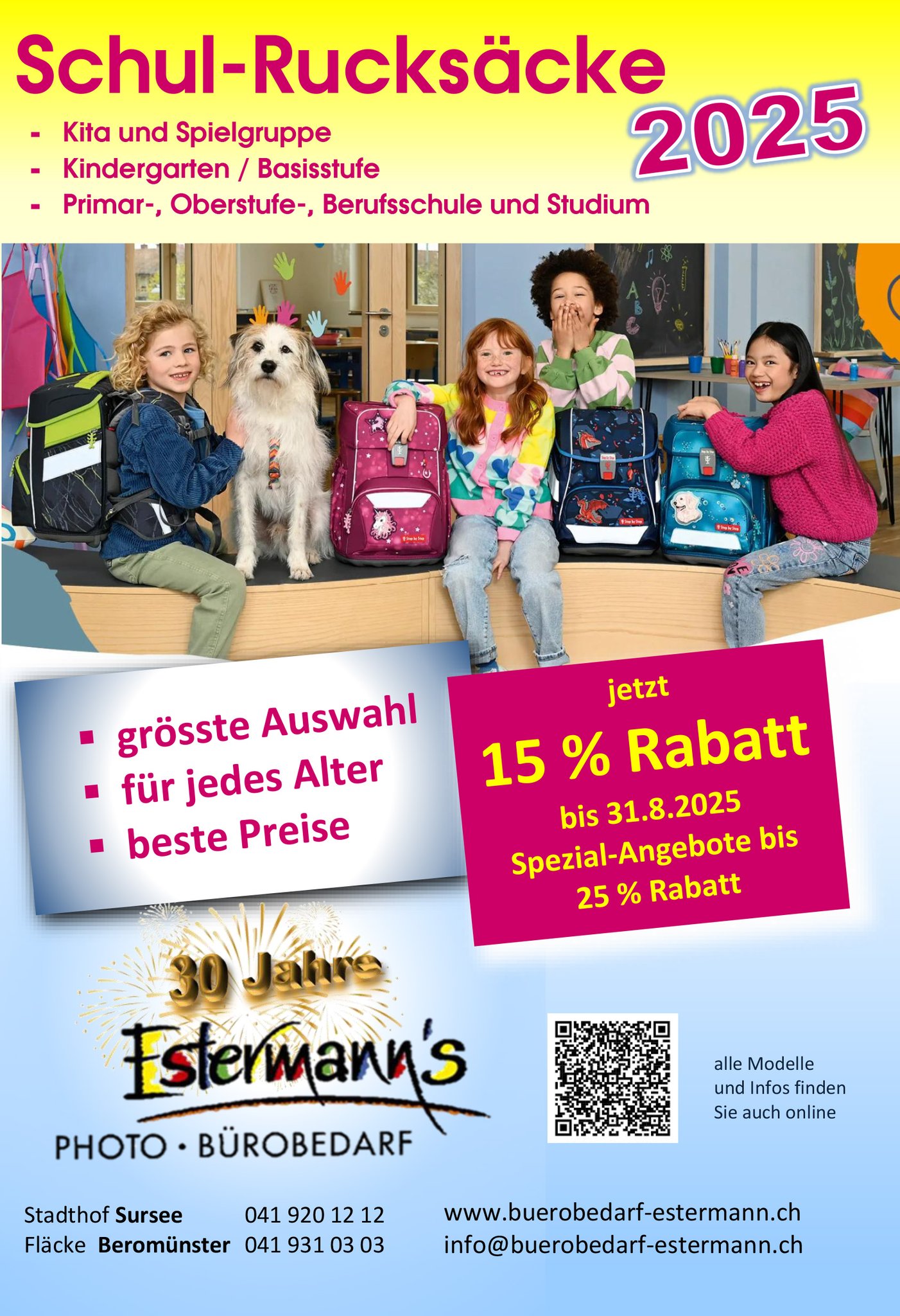 Gesamtprospekt Schulrucksack-Sortiment 2025 Estermann's Photo- und Bürobedarf AG