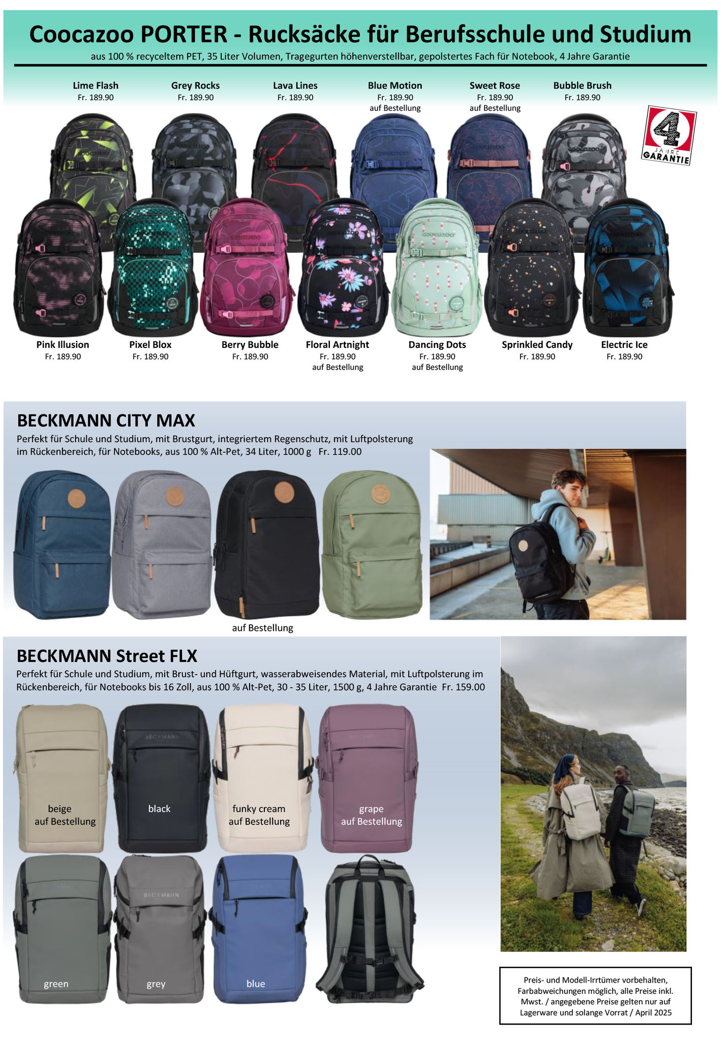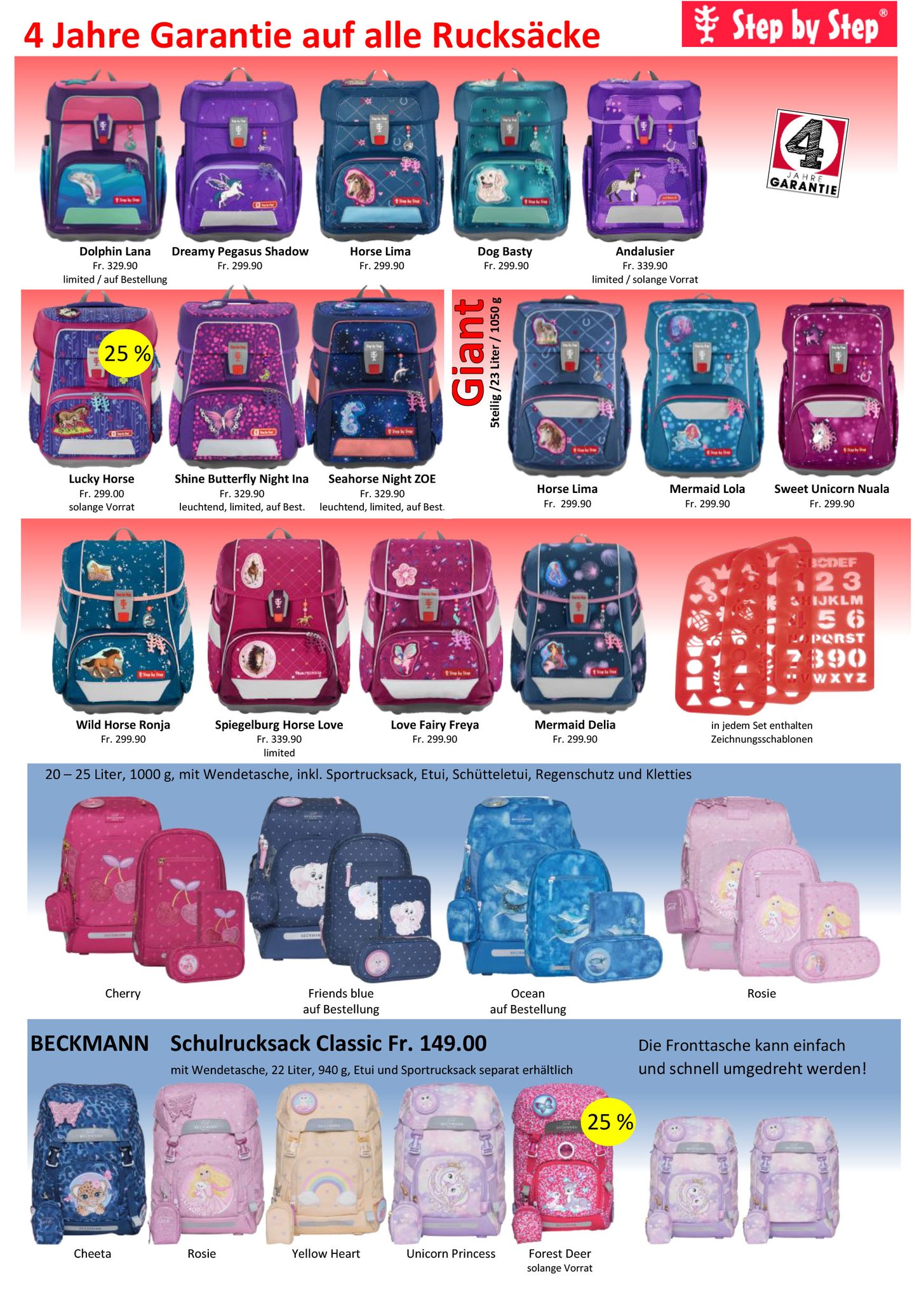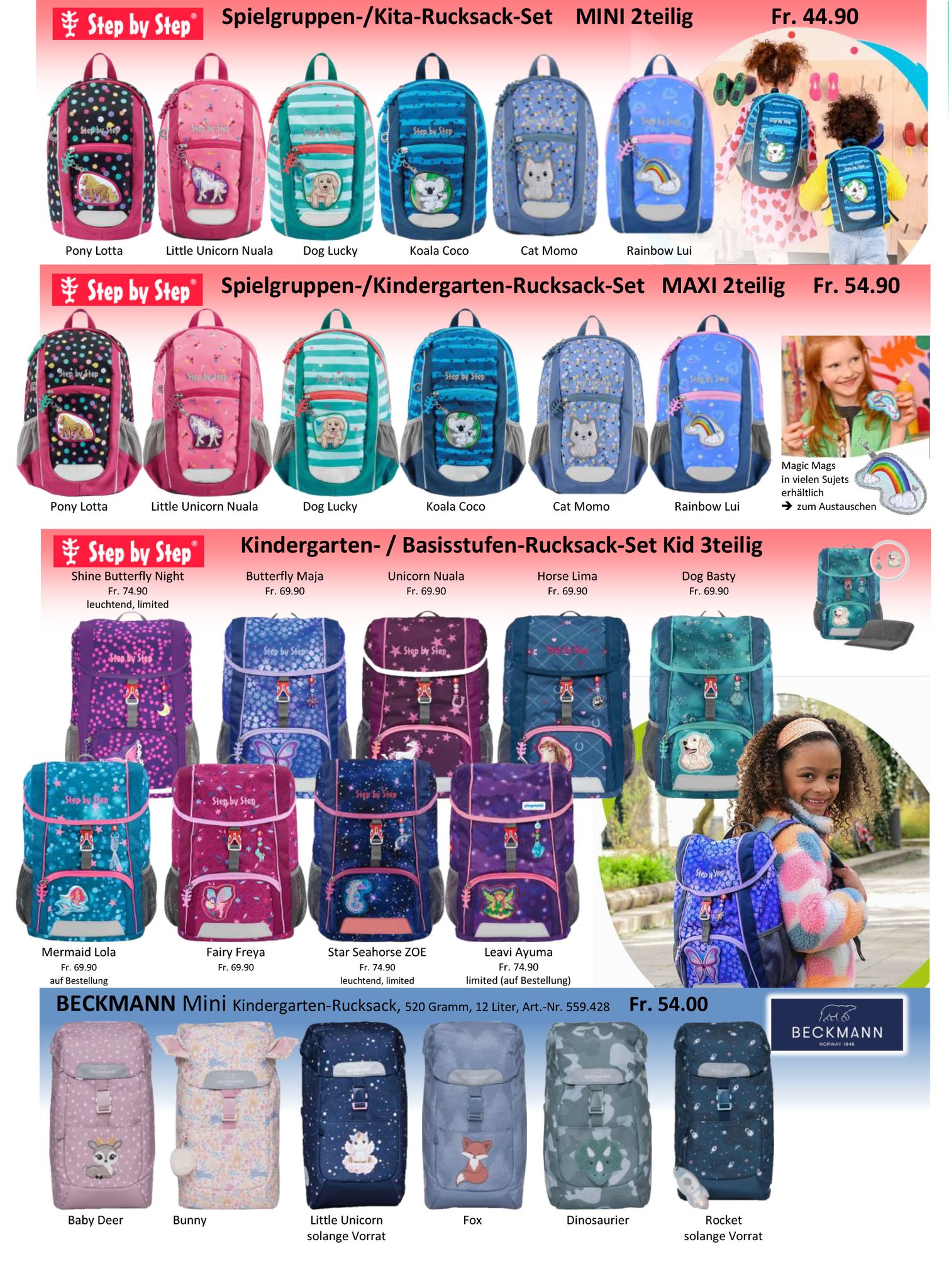 Gesamtprospekt Schulrucksack-Sortiment 2025 Estermann's Photo- und Bürobedarf AG