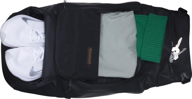 sportliches Design, Volumen 22 Liter, atmungsaktives Rückenpolster, mehrere Fächer mit wasserdichten Reissverschlüssen, Extra-Fach mit Luftaustausch für Schuhe oder Handtuch, integriertes Ballnetz, Gewicht 850 Gramm