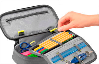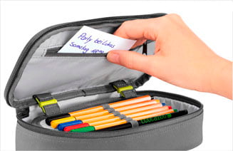 Schüttel-Etui mit 2 herausnehmbare Unterteilung, um wichtige Dinge zu fixieren wie Lineal, Zirkel, einzelne Stifte etc., mit Schliessfach im Deckel, aus 100 % Alt-Pet hergestellt, in den Farben der Schulrucksäcke erhältlich, Gewicht 170 g, bitte beachten Sie, dass eventuell ein Sujets nicht mehr lieferbar ist. Besten Dank fürs Verständnis.